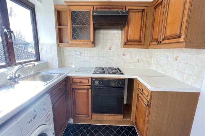 Kitchen - Rear facing window kitchen with tiled splash back walls. Fitted with wall and base units, under counter space with plumbing for washing machine and room for stand alone fridge freezer. Electric oven with hob.